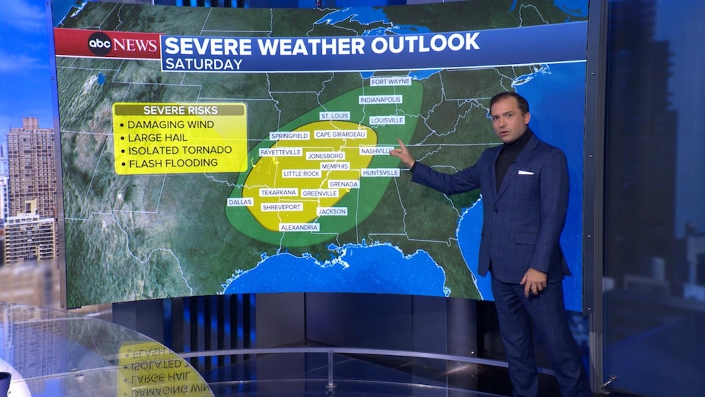 Tornadoes, strong winds and hail could hit areas from Ohio to Texas this weekend as a cold front forms across Midwest and South.