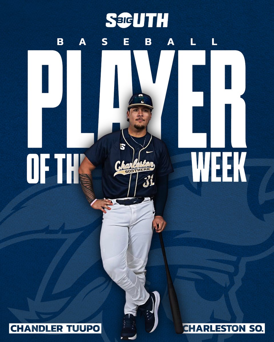 He batted .529 (9-for-17) with five runs scored, 1️⃣2️⃣ RBI, four home runs and a double to help Charleston Southern go 4-0 last week 💯 @CSU_BucBaseball's Chandler Tuupo is the #BigSouthBase Player of the Week!