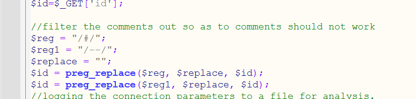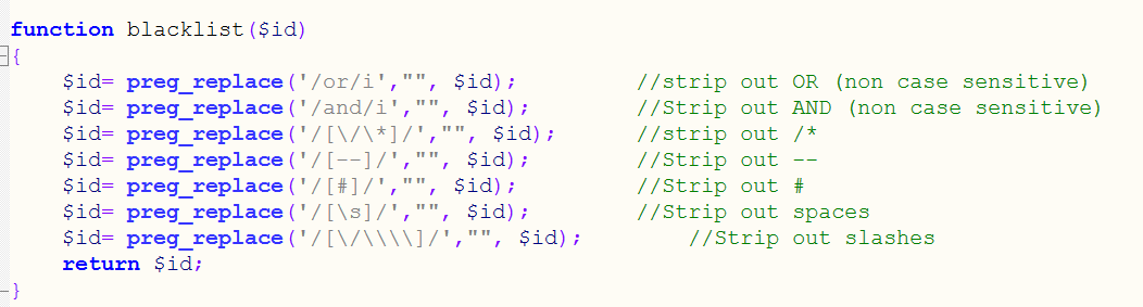 分析php代码,此处过滤了#和-- 让我们无法注释后面语句,但可以使用and '1'='1 来注释