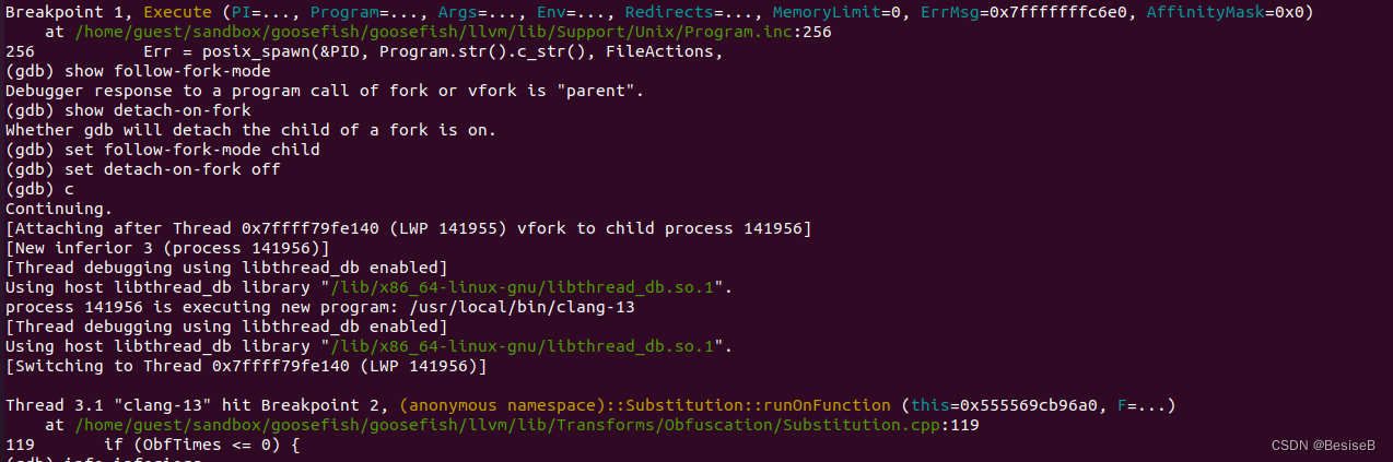 clang+llvm的多进程gdb调试技巧,如何进入子进程、返回父进程等。