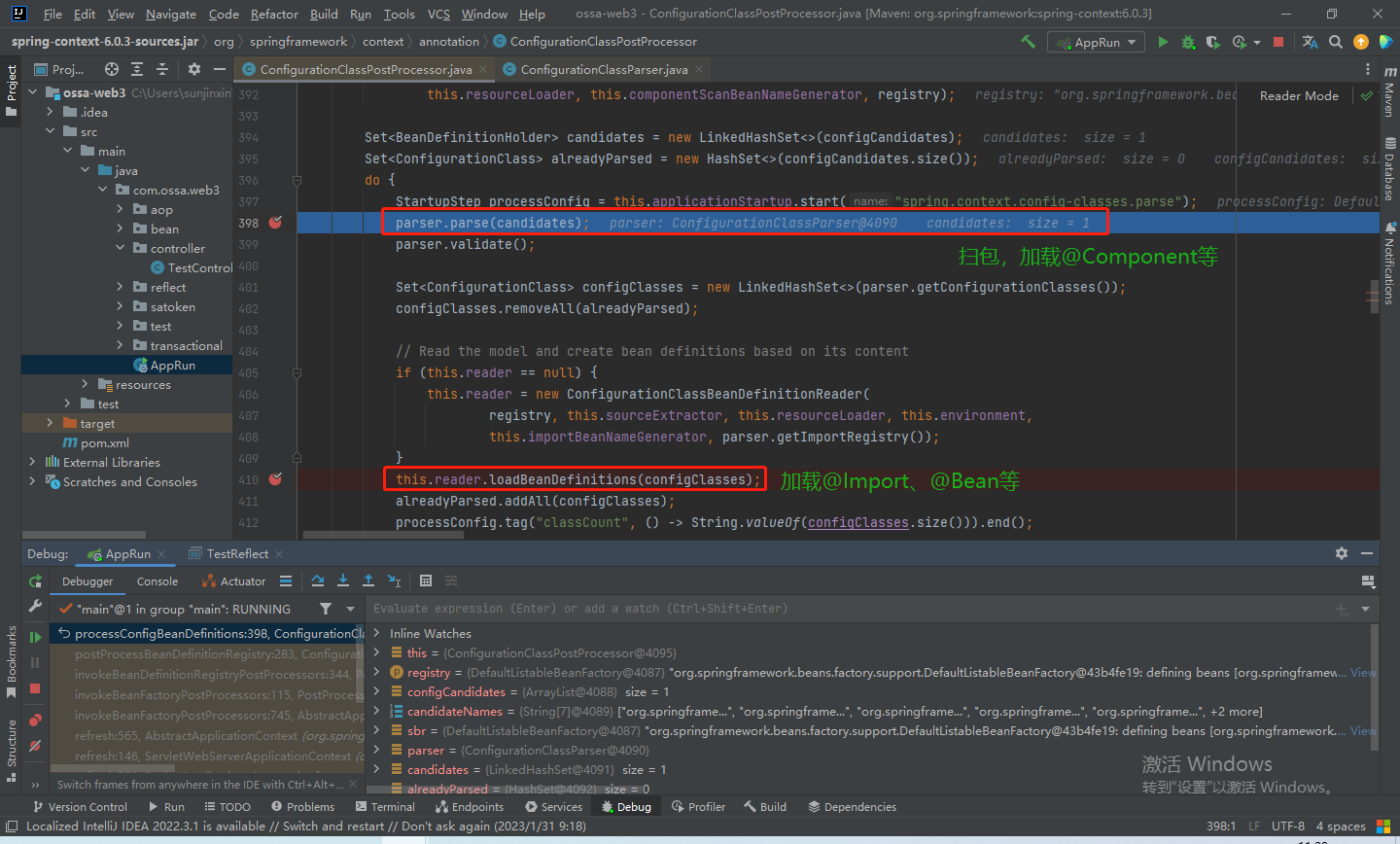 环境:Spring6、SpringBoot3.0、JDK17多看注释梳理整体设计思想IOC是一个容器,对象的创建、使用和销毁都是由IOC容器来管理。《五分钟带你速通Spring IOC》加载配置文件(XML\YAML…)、配置类,并解析成BeanDefinitionBeanFactoryPostProcessor对BeanDefinition做一些处理实例化bean对象初始化bean对象(属性填充等),并且在初始化前后通过BeanPostProcessor对bean对象进行相关处理。