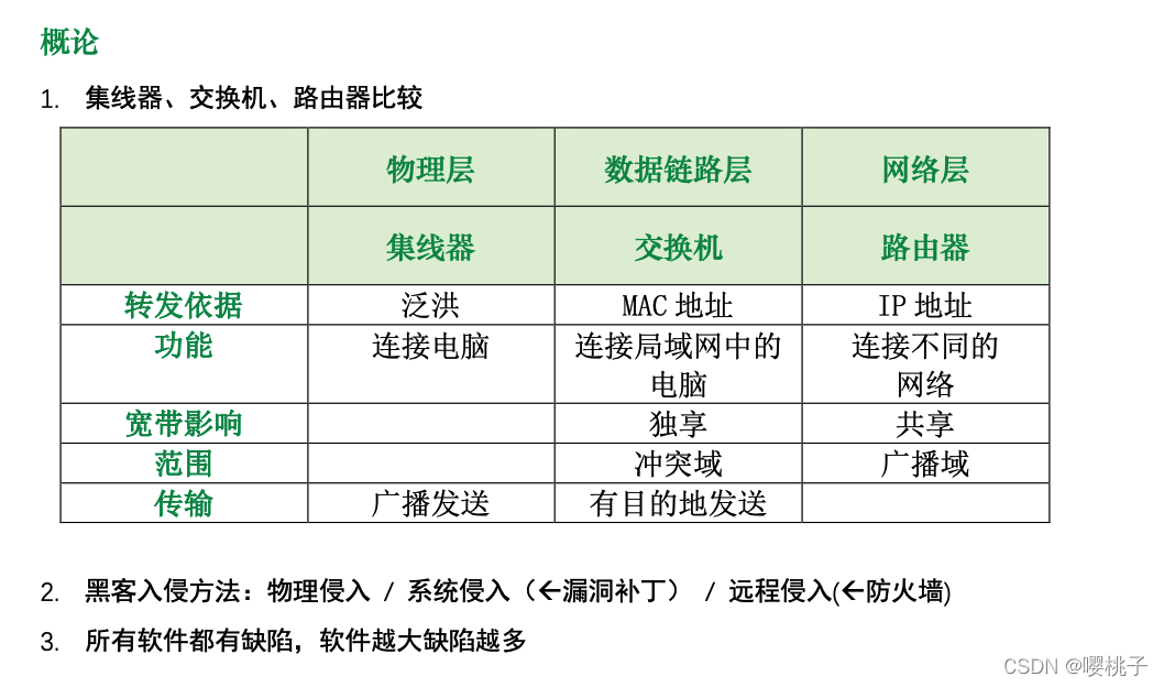 文章目录一、网络安全概述1.1 定义1.2 信息安全特性1.3 网络安全的威胁1.4 网络安全的特征二、入侵方式2.1 黑客2.1.1 入侵方法2.1.2 系统的威胁2.2 IP欺骗与防范2.2.1 TCP等IP欺骗基础知识2.2.2 IP欺骗可行的原因2.2.3 IP欺骗过程2.2.4 IP欺骗原理2.2.5 IP欺骗防范2.3 Sniffer 探测与防范2.3.1 Sniffer原理2.3.2 Sniffer防范回顾知识:交换机、路由器、集线器2.4 端口扫描技术2.4.1 原理2.4.2 分类2.4.