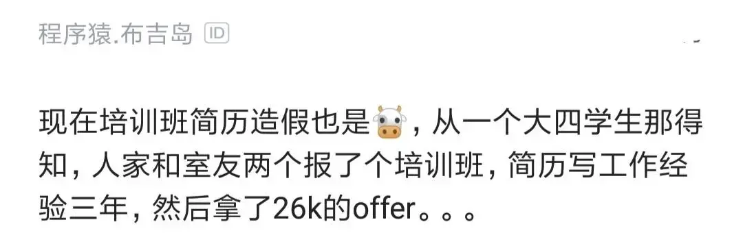 程序员吐槽培训班简历造假,经验包装竟拿到阿里外包26k的offer