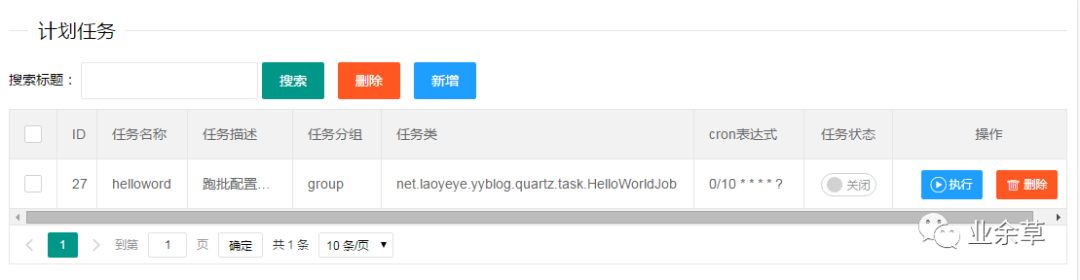 好了,大功告成,一个简单的动态配置的定时任务已经完成。是不是so easy,下面我们再来简单实现下其他的几种常用的api吧。