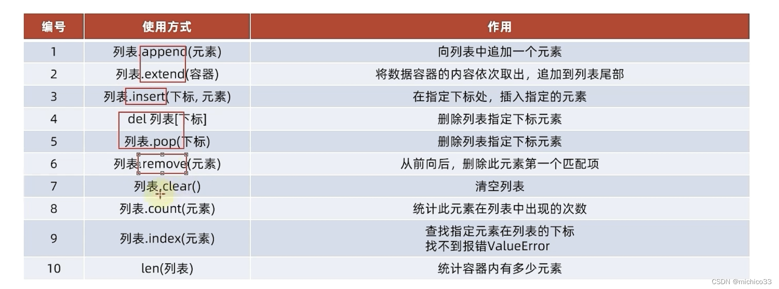 列表内的每一个数据,称之为元素。以[]作为标识列表内每一个元素之间用,隔开元素的数据类型没有任何限制,甚至元素也可以是列表,这样就定义了嵌套列表。#基本语法:# 定义列表字面量#[元素1, 元素2, 元素3,元素4]# 定义列表变量# 变量名称=[元素1, 元素2, 元素3,元素4...]print(name_list) #print语句输入列表# 定义空列表# 变量名称=[]# 变量名称=list()# 定义一个嵌套的列表。