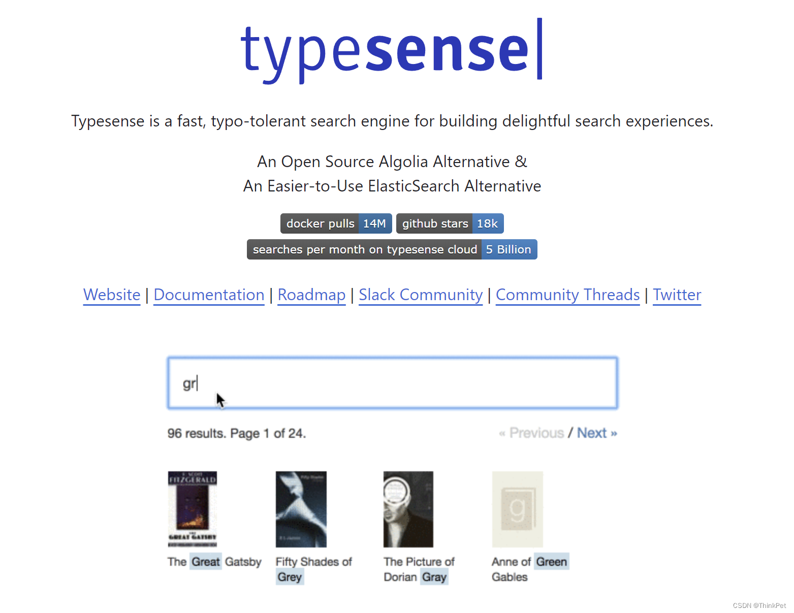 Typesense是一个快速、允许输入错误的搜索引擎,用于构建愉快的搜索体验。开源的Algolia替代方案& 易于使用的弹性搜索替代方案官网: https://typesense.org/目前已有18.4k star。