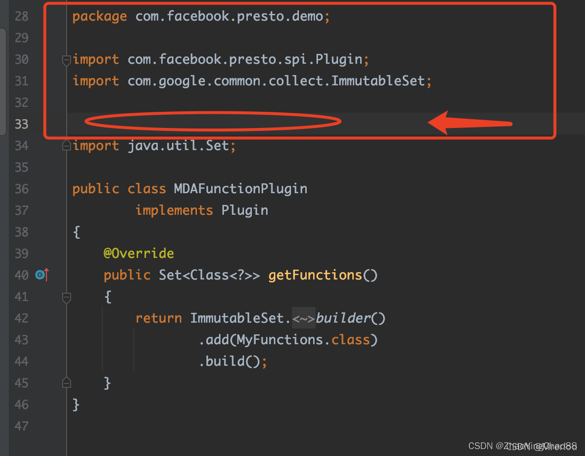 ScalarFunction("to_upper") // 固定参数,表示函数名的意思,也就我们在使用Presto的时候用的函数名@Description("我的大小写转换函数") // 函数的注释@SqlType(StandardTypes.VARCHAR) // 表示数据类型// 将获取到的数据转换大写// 在转换后的数据放入内存返回实现presto函数的开发,使用新建maven工程的方式,要比在presto代码下新建子工程的方式简单的多,推荐大家使用方法二。