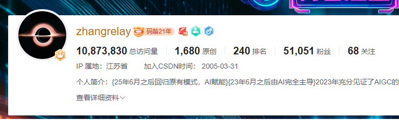 个人简介:{25年6月之后回归原有模式,AI赋能}{23年6月之后由AI完全主导}2023年充分见证了AIGC的强大潜力,在被完全取代之前,依旧不忘初心,坚持更新。(2022年及之后,虽然课程教学所作的努力全部失败,但依然在努力寻找那微弱的光。2021年及以前:LoveRobot,Go!!!!人工智能和机器人粉,从事机器人工程专业本科教学和科研工作,研究方向包括多机器人仿真技术,控制与协作,机器人系统软硬件开发等。)