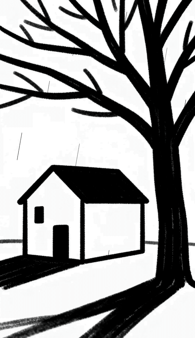 日系插画风 → 用偏灰、偏蓝、半透明的雨线。
