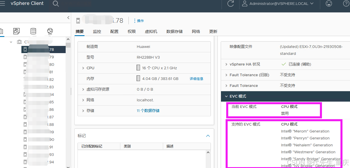 vSphere启用EVC时遇到CPU不同代际集群的迁移问题处理一例