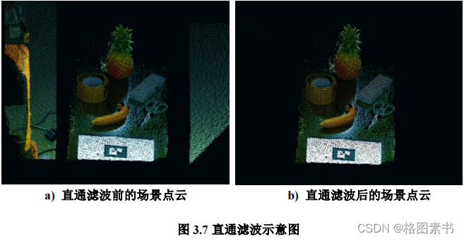 集到的深度信息会存在噪点,因此需要将生成的场景点云进行预处理,获得平滑、降采样处理场景点云,本文设计的预处理操作更能从冗杂的场景点云中提取清晰、平滑的目标点云,便于后续的抓取位姿采样,提高后续算法的处理效率。因此需要对场景点云进行适当的分割,仅保留目标物体的点云,整个过程可以通过。场较小时,空间中的点云密度会更加提高;觉子系统的效率,再保持全局点云几何形状不改变的前提下,通过对目标点云进行。体素降采样可以快速地减少点云数据并同时保持点云的形。个点,由于我们实施抓取的目标物体只占整个场景点云图的一部分,