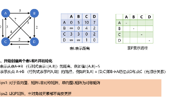 Floyd算法又称为插点法,是一种利用动态规划的思想寻找给定的加权图中多源点之间最短路径的算法,与Dijkstra算法类似。从任意一条单边路径开始。所有两点之间的距离是边的权,如果两点之间没有边相连,则权为无穷大。对于每一对顶点 u 和 v,看看是否存在一个顶点 w 使得从 u 到 w 再到 v 比已知的路径更短。如果是更新它。把图用邻接矩阵G表示出来,如果从Vi到Vj有路可达,则Gij=d,d表示该路的长度;否则Gij=无穷大。