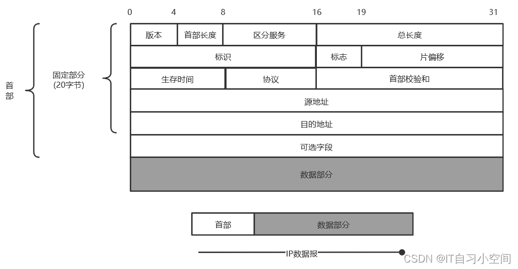 目录IP数据报IP数据报头字段IP数据报在TCP/IP协议中, 使用IP协议传输数据的包称为IP数据包TCP和IP的区别TCP: 传输控制层协议, 位于传输层, 它是一种有连接、可靠、面向字节流、基于IP的传输层协议IP: 因特网协议, 位于网络层, 它是一种无连接、不可靠、IP协议规定了数据传输时的基本单元和格式IP数据报由首部和数据部分组成, 首部的前一部分是固定的, 共20字节, 然后还有一部分是可选字段, 它的长度是可选的IP数据报头字段版本: 表示IP协议的版本, 如目前广泛使用的