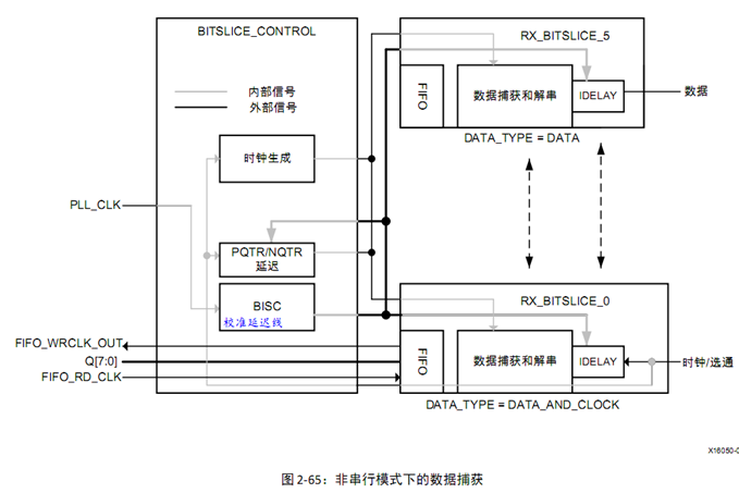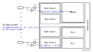 1Bank的52Pins分4 Byte Group,每Byte Group 13Pins=Nibble_up 7Pins + Nibble_low 6Pins。每个nibble一个bitslice_control管理自己的6~7个pins。每个pin对应一个bitslice,它内部又包含多个component,如IOSerdes,IODelay等。可以单独使用调用Component Primitives;也可整体使用调bitslice原语称为native mode;