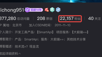 个人简介:开创前端晋升路线:【大前端++】技术路线;并建立大前端++知识星球 独立开发运营:SmartApi 开发工具软件,官网地址:http://www.smartapi.site; 著有《修心力》(正在出版中)、《健康的本质》(正在写作中)。。。其他杂谈文章等等; 抖音每周六、日早四点半进行读书、修心力、论健康等话题直播或聊天室,欢迎预约加入我的直播间; 公众号:为郎