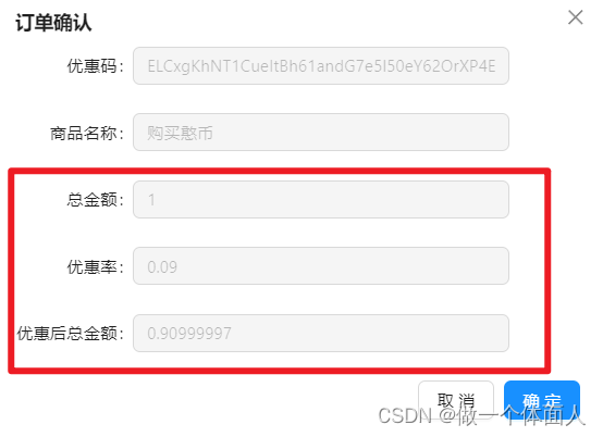 在提交订单时候,输入充值金额和优惠码,后台会返回具体的订单信息,如下图,支付金额应该是1 * (1 - 0.09) = 0.91(这个是理想状态),但是表单显示的是0.90999997,然后点击确认的时候,它会进行支付请求,最终报错如下,错误表达就是参数无效去支付宝沙箱官网看参数设置,主要是下面这五个参数其中total_amount这个参数它要求精确到小数点后两位,再看我订单返回的值是0.90999997,就是这个参数导致支付失败精度丢失说明:浮点数精度丢失问题源于计算机如何表示和处理浮点数。计