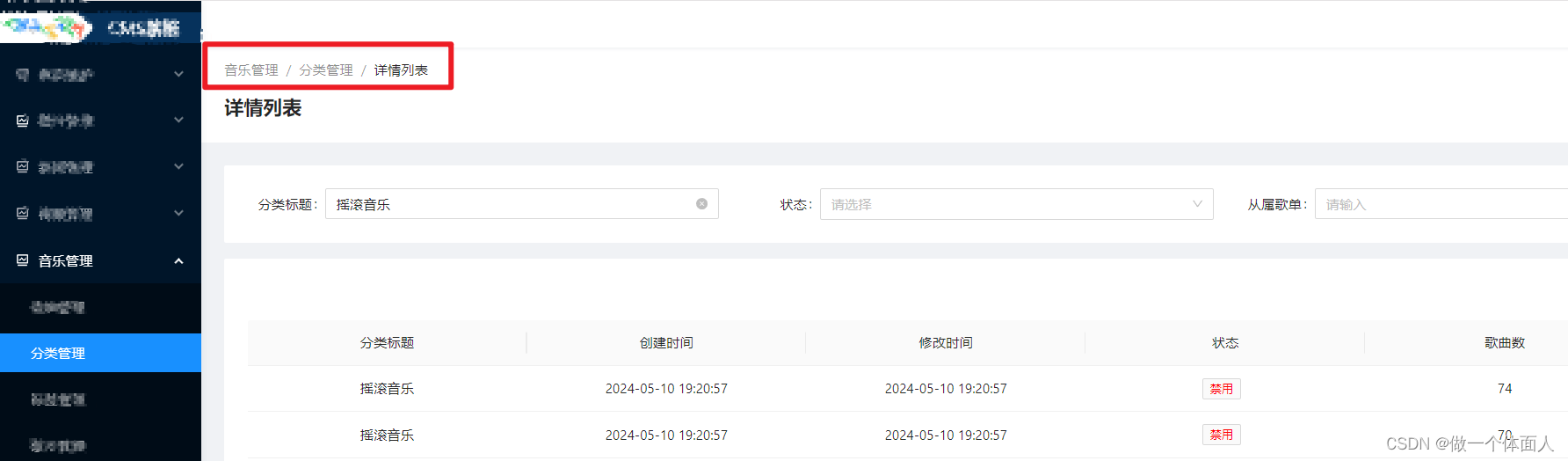 path: 'music', // 一级路由routes: [path: 'clManager', // 二级路由},path: 'clManager/detail', // 三级路由},