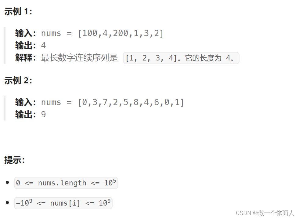 给定一个未排序的整数数组 nums ,找出数字连续的最长序列(不要求序列元素在原数组中连续)的长度。请你设计并实现时间复杂度为 O(n) 的算法解决此问题。