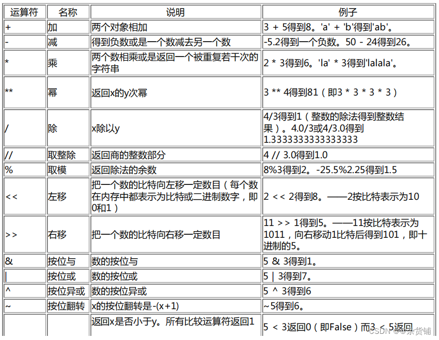 一个简单的表达式例子如2 + 3。一个表达式可以分解为运算符和操作数。运算符的功能是完成某件事,它们由如+这样的符号或者其他特定的关键字表示。运算符需要数据来进行运算,这样的数据被称为 操作数。在这个例子中,2和3是操作数。函数是重用的程序段。允许给一块语句一个名称,然后可以在程序的任何地方使用这个名称任意多次地运行这个语句块。这被称为 调用 函数。函数通过def关键字定义。def关键字后跟一个函数的 标识符 名称,然后跟一对圆括号。圆括号之中可以包括一些变量名,该行以冒号结尾。