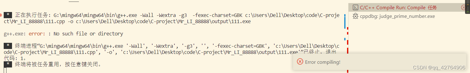 关于VScode中 插件C/C++ Compile Run的一些问题【ERROR compiling C/C++ Compile Run的配置中多了一个空格】