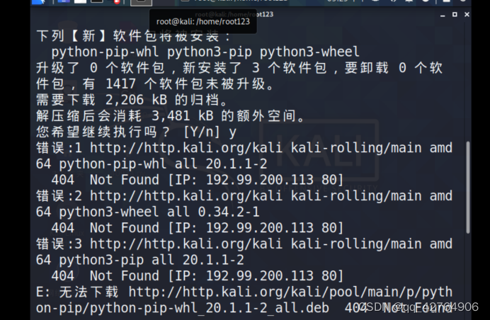 kail(linux)中安装pyhon3-pip 失败的解决方法【换源】