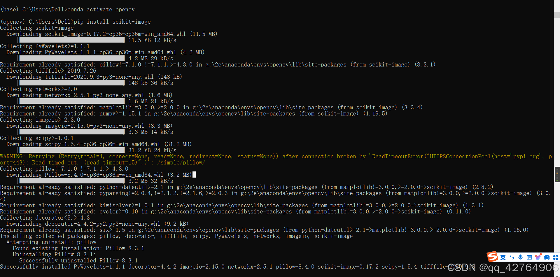 1.安装opencv-python失败的解决办法 2.pip 安装失败 3.WARNING:Ignoring invalid distribution-ip 的解决办法 +镜像网站