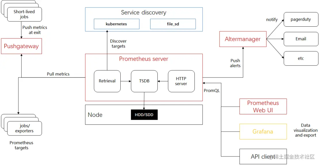 2.2 Jobs:应用系统通过集成Prometheus的形式,开发符合Prometheus接口规范的监控数据查询接口供Prometheus服务端拉取采集的监控数据;