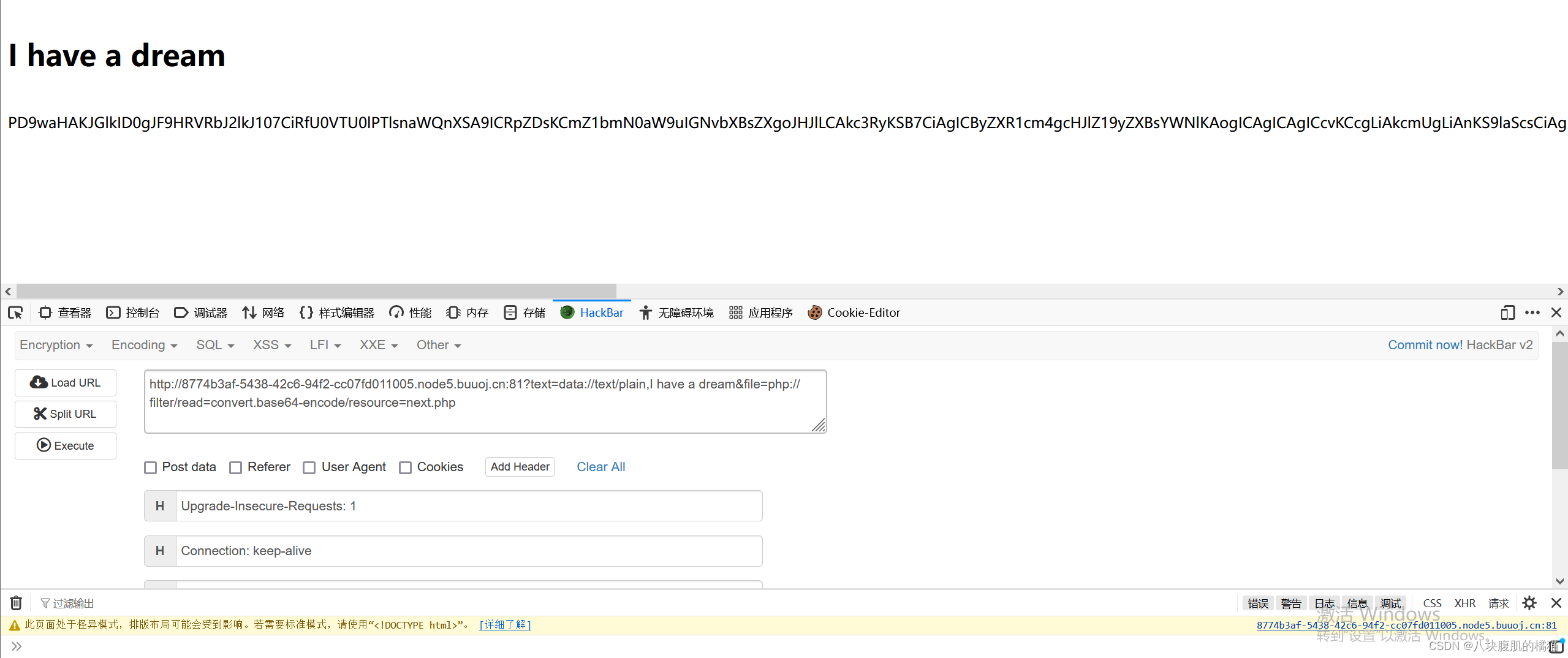 看到file_get_contents,直接用date协议,错不了;看到include 直接filter协议,错不了。进行base64解码,得到。
