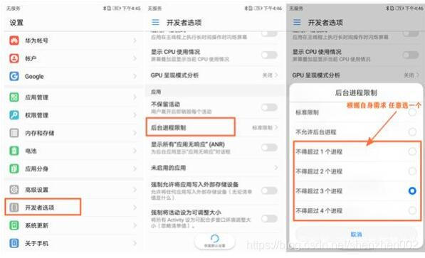 华为手机卡顿怎么办?有什么方法处理  一、调整默认设置  1.调整后台进程限制  调整后台的进程限制是能让我们的手机变得更流畅哦。打开【设置】,点击【开发者选项】,点击【后台进程限制】,之后根据自己的选择进行选择即可,可以选择【不得超过1个进程】、【不得超过2个进程】、【不得超过3个进程】、【不得超过4个进程】。  设置完成后,当我们手机里运行的应用超过我们所限定的值后,就会自动进行清理,将一些偷偷运行的应用关闭掉了。    另外,找不到【开发者选项】的朋友们,不要慌..