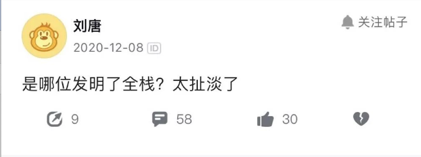 大家好,我是业余码农。早在我还是个学生的时候,就经常听到「全栈工程师」的称号。那时候就觉得这个岗位一定很牛逼,前后端的技术都会,一定是程序员中的人上上。后面慢慢也听说过,全栈工程师实际上就是啥都会点,但啥都不精,就跟我们大学时代的那些专业一样。看起来好像博大精深,但是都只是略懂皮毛。那全栈是不是一个扯淡的事呢?随着工作年限的提高,最近我也逐渐接触并承担了一些关于全栈的开发工作,觉得这个方向还是挺有意思的。感觉是,没有程序员人上人这么夸张,但是需要掌握和涉猎的技术点也的确是挺多的。这里总结几个关