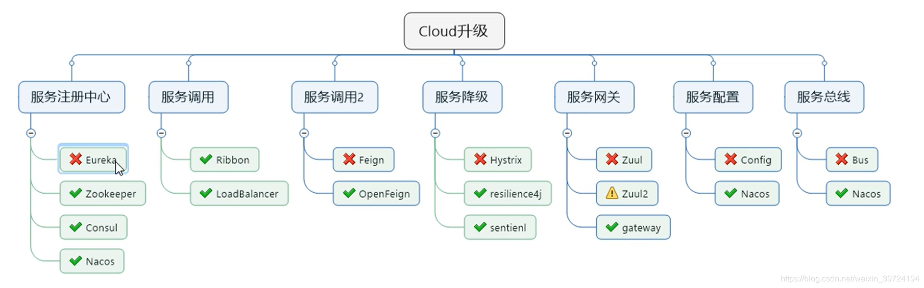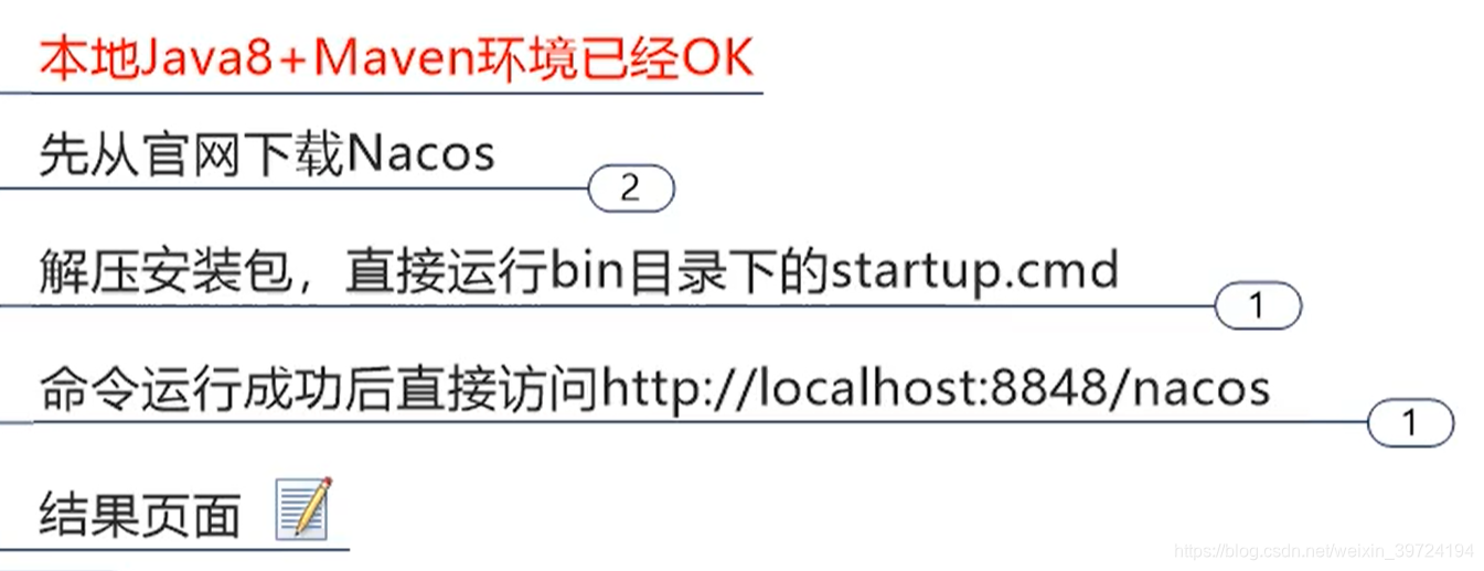 概述:Nacos:一个更易于构建云原生应用的动态服务发现、配置管理和服务管理平台。Nacos = Eureka + Config + Bus。能干吗:替代Eureka做服务注册中心,替代Config做服务配置中心安装nacos:Nacos作为注册中心的使用基于Nacos的服务提供者:创建9001项目:进行测试:新建9002项目,进行测试:基于Nacos的服务消费者:经过测试可以看到nacos是支持负载均衡的,这是因为里面集成了ribbon。各种注册中心的比较: