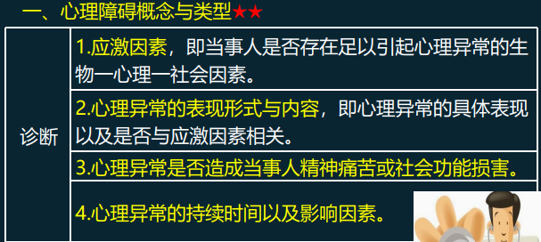 1.应激因素,即当事人是否存在足以引起心理异常的 生物一心理一社会因素。
