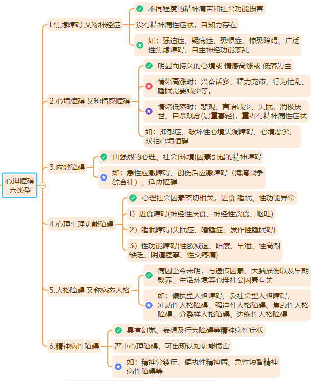 主要类型:急性应激障碍、创伤后应激障碍(海湾 战争综合征)、适应障碍。