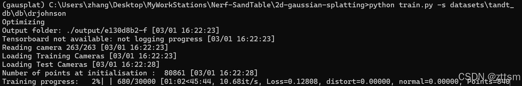 在cmd中git clone https://github.com/hbb1/2d-gaussian-splatting.git --recursive。在anaconda prompt中activate 该环境。数据集采用3D GS提供的colmap处理好的输入。和3D GS的anconda环境一样,参考。