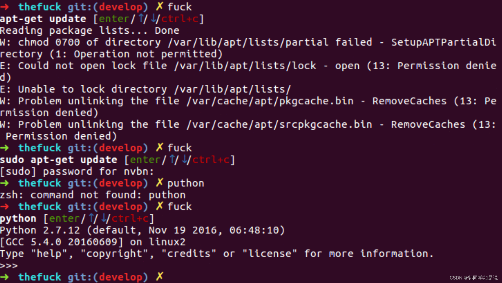 命令行自动纠错命令:fuck
