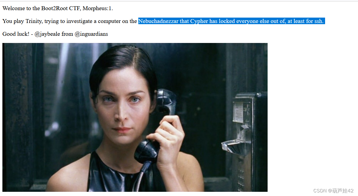 一天,女王得到了一个匿名举报,说她的侍卫里有一个刺客,叫做Rabin,而他的信息就在一份文件里,文件中有附带一个Pk,是523798549,密文是162853095,校验码二进制值是110001,根据说明是放在明文后一起加密的,明文与密文长度相同。所以 z = Fraction(1,Derivative(arctan(p),p))-Fraction(1,Derivative(arth(q),q))注:这道题 n=p*q*r 由多个素因子构成,因此 phi_n = (p-1)*(q-1)*(r-1)