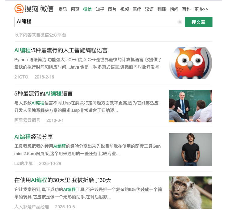 https://weixin.sogou.com/weixin?type=2&s_from=input&query=AI编程&page=1