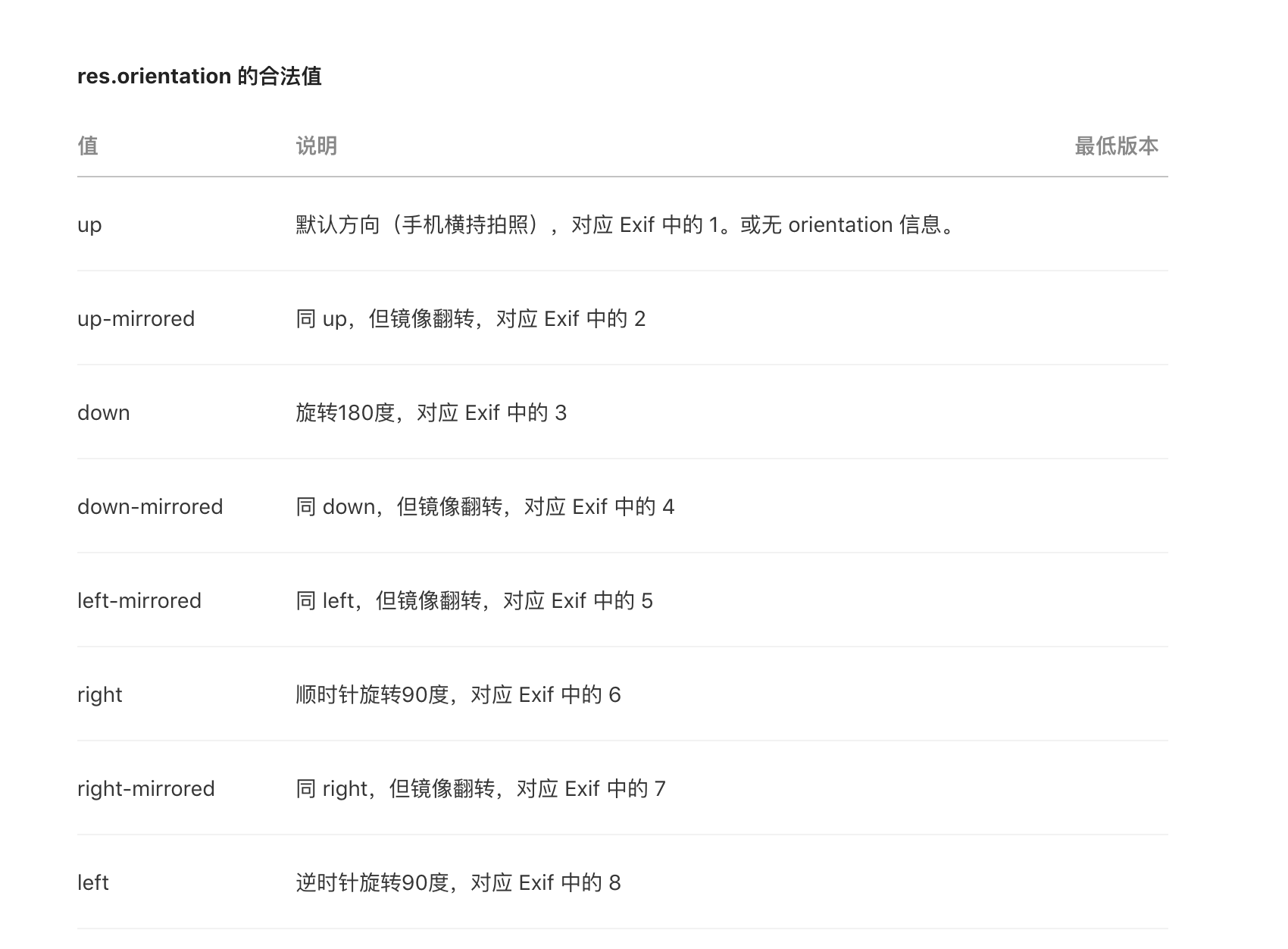 问题?开发中遇到微信小程序在上传照片后,会有一定概率旋转,查阅了资料之后,发现是和图片中携带的exif信息中的orientation这个参数有关。小程序的页面实用webview渲染的,webview的图片渲染不会读取图片的exif信息,这个浏览器内核没支持,而小程序的预览图片wx.previewImage可以是因为客户端解析了exif信息。解决办法由于个别图片拍摄时候自带旋转信息,经过个人测试跟图片大小和后缀没关系,部分机型会在选择相册时候进行了上面那个旋转(图片带有多少度旋转就旋转多少度),上传