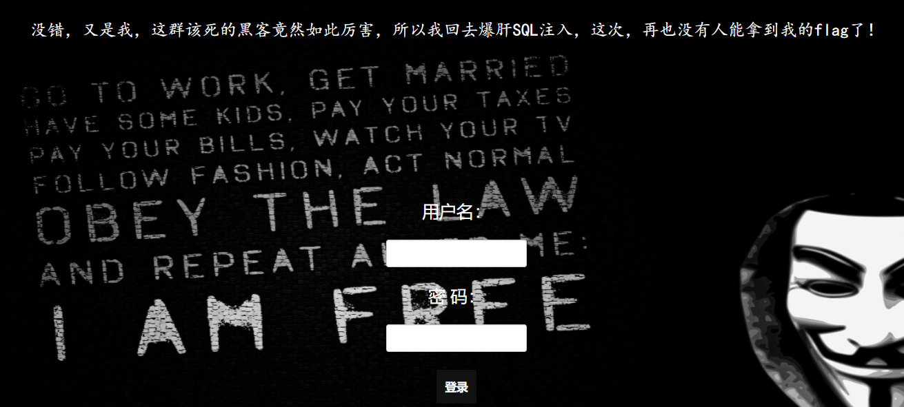 进入题目一个登录框对登录框做了一些常规的sql注入和fuzz发现都无果。然后在等级登录后跳转的search.php页面查看源代码发现一段编码。MMZFM422K5HDASKDN5TVU3SKOZRFGQRRMMZFM6KJJBSG6WSYJJWESSCWPJNFQSTVLFLTC3CJIQYGOSTZKJ2VSVZRNRFHOPJ5发现其是一段base32编码,解码后发现又是一段base64编码。c2VsZWN0ICogZnJvbSB1c2VyIHdoZXJlIHVzZ