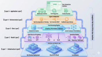 许多团队在做 AI 应用时都有类似体验:模型参数越来越大、能力越来越强,但真正落地时,却频频遭遇“跑不动、接不进业务、用户不用”的尴尬局面。背后原因往往不是“模型不够强”,而是缺少从硬件到应用的全栈视角,忽略了基础设施、数据、编排和产品形态之间的系统性关系。本文面向开发者、架构师和技术决策者,从一个真实的场景出发,系统拆解 AI 技术栈的五个关键层次,并给出选型思路、实践建议与成本权衡。如果只盯着某一个“最强模型”,AI 系统很容易陷入“看起来很厉害,但实际用不起来”的陷阱。