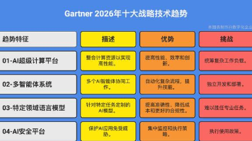 2025年10月21日,Gartner发布企业机构需在2026年重点关注的十大战略技术趋势。本次涉及的技术包括:人工智能原生开发平台;AI超级计算平台;机密计算;多代理系统;特定领域的语言模型;物理人工智能;前置式主动网络安全;数字溯源;人工智能安全平台;地缘回迁。02。