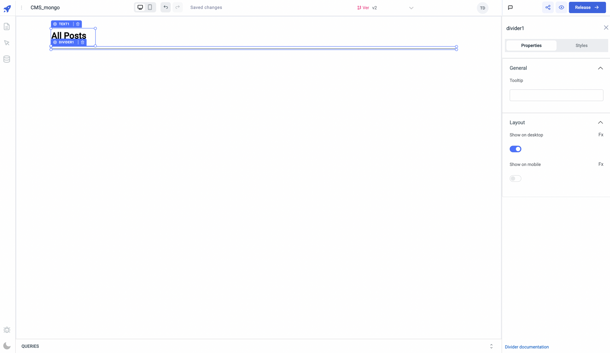 • Drag a divider below the text component.