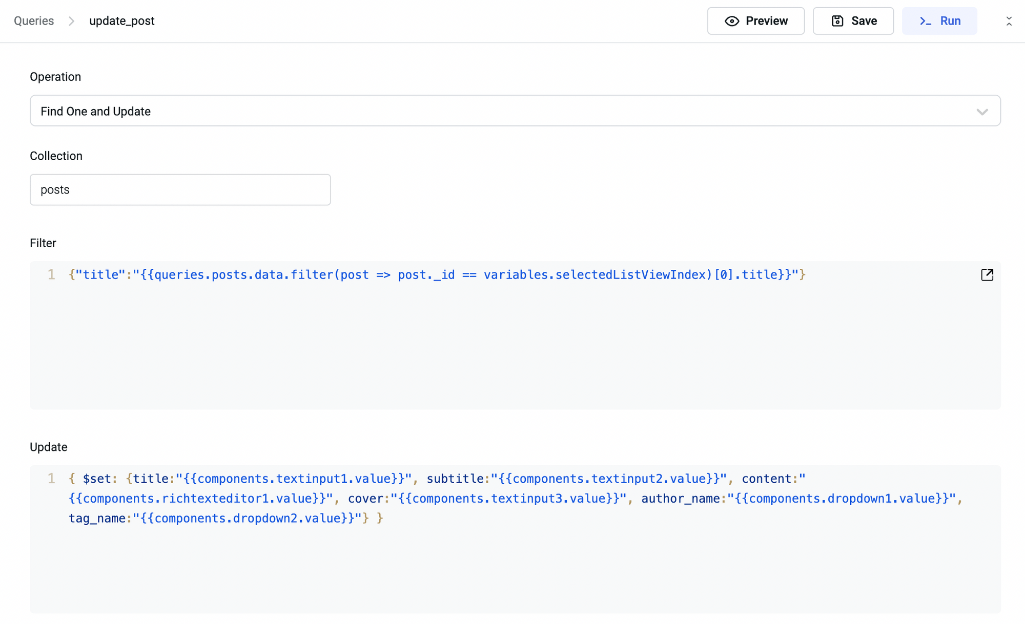 {{queries.posts.data.filter(post => post._id == variables.selectedListViewIndex)[0].title}}