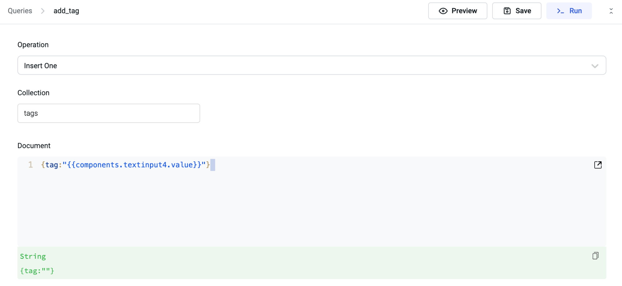 {tag:"{{components.textinput4.value}}"}