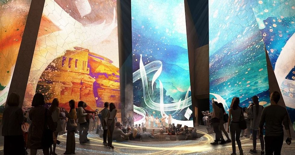 Visitors can interact with immersive environments and audiovisual displays celebrating Saudi Arabia’s innovations and rich cultural heritage. Journey Studios, 59, and Squint/Opera designed a seamless fusion of live performance and in-person residencies with spatial and digital storytelling. Their collaboration with Fosters+Partners creates a multi-layered experience to enhance engagement, understanding, and connection, with technology as the invisible facilitator.