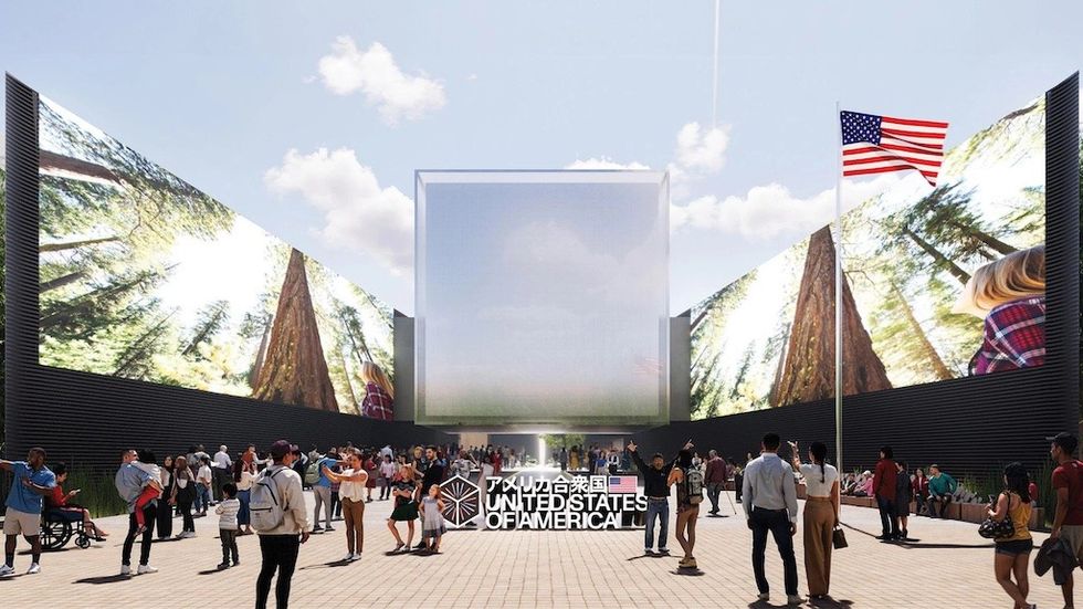 The USA Pavilion at Expo 2025 Osaka, designed by Trahan Architects, carries the theme Imagine What We Can Create Together. Its open design is inspired by Japanese footbridges and includes a gently curved central plaza, symbolising balance and simplicity. At the heart of the pavilion stands a clear, floating cube that creates a reflective space where visitors can engage with changing images of American landscapes, urban scenes, and views of outer space.