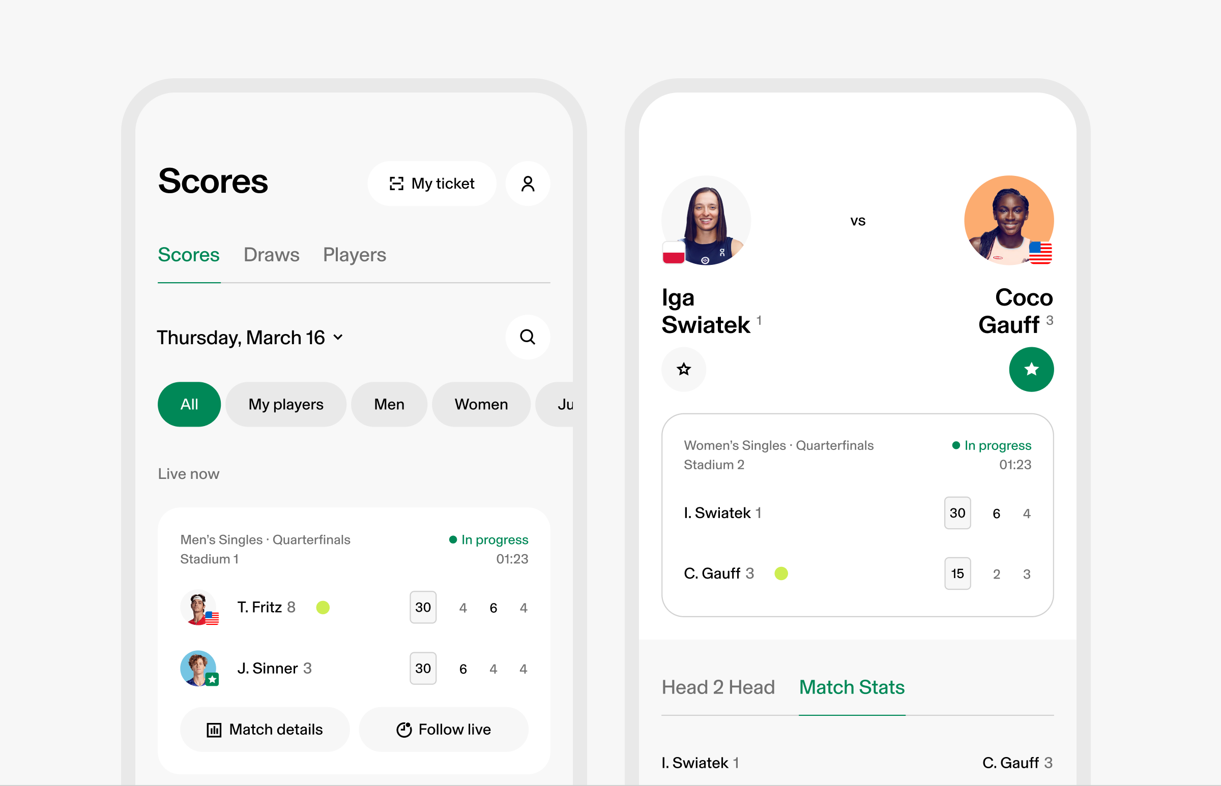 Stay up-to-date on all the competition from Indian Wells with live ball-by-ball coverage, daily schedules, scores and results, in-depth stats and head-to-head match-ups, live match streaming for fans on-site, news and more.
