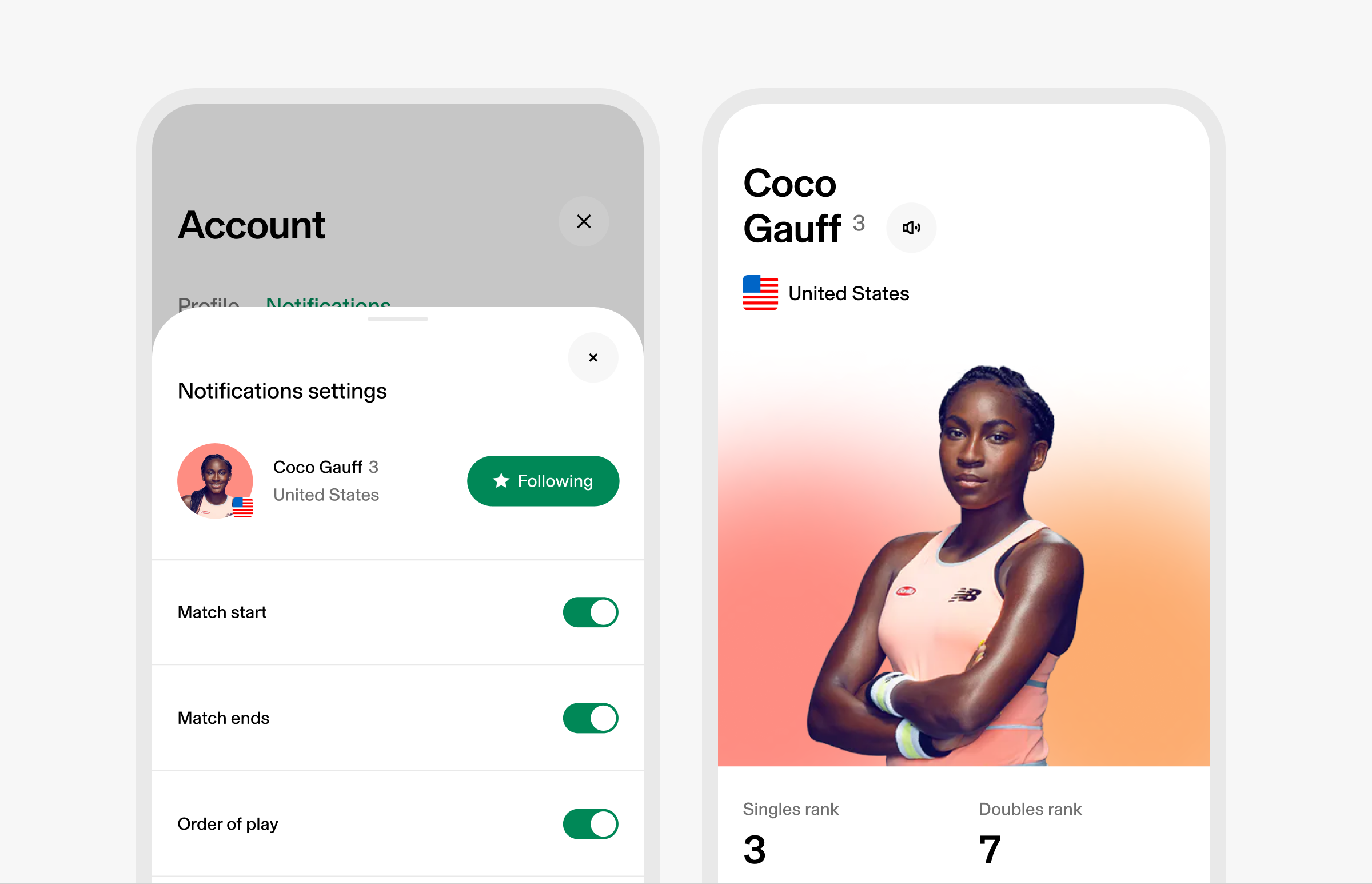 With the ability to select favorite players, the app allows users to create a customized experience with personalized notifications for players, match updates, events and more. Track your favorite players throughout the event with targeted news and alerts tied to the players you love most.