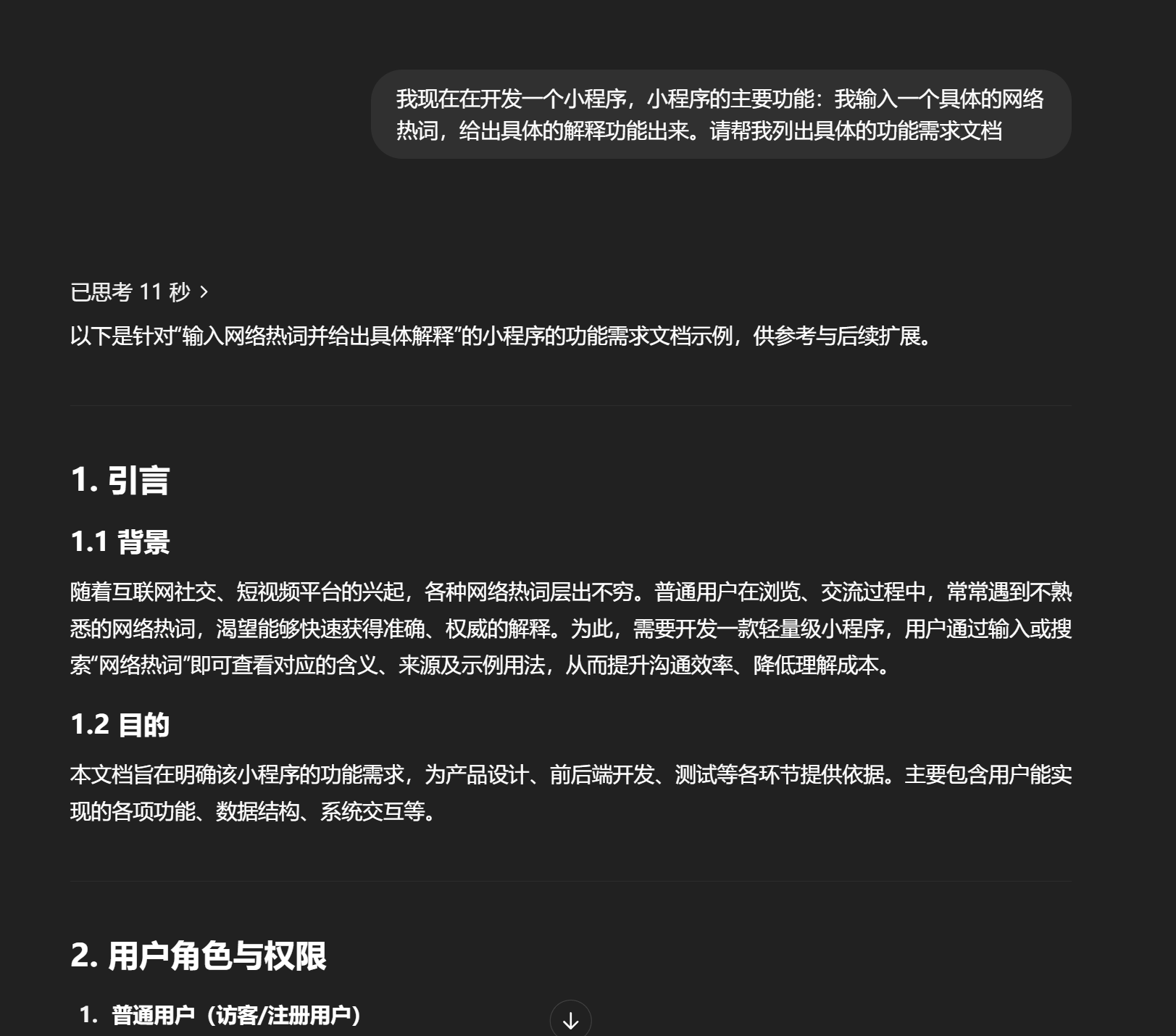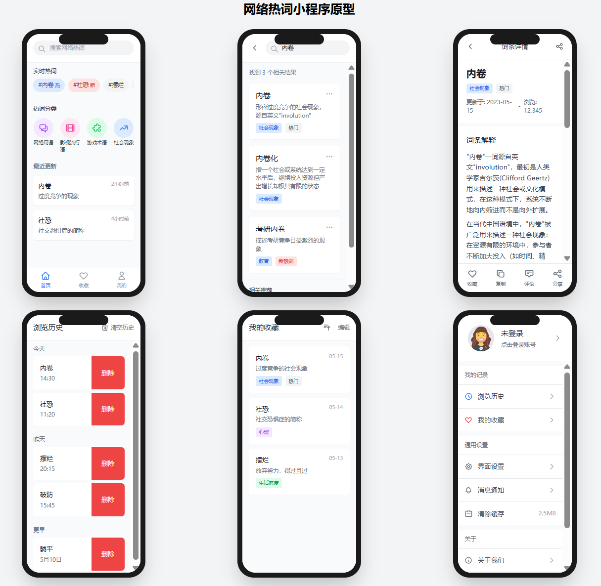 需要先明确小程序的核心功能:用户输入一个当前热门的网络热词,系统即可对该词的含义进行详细解释。